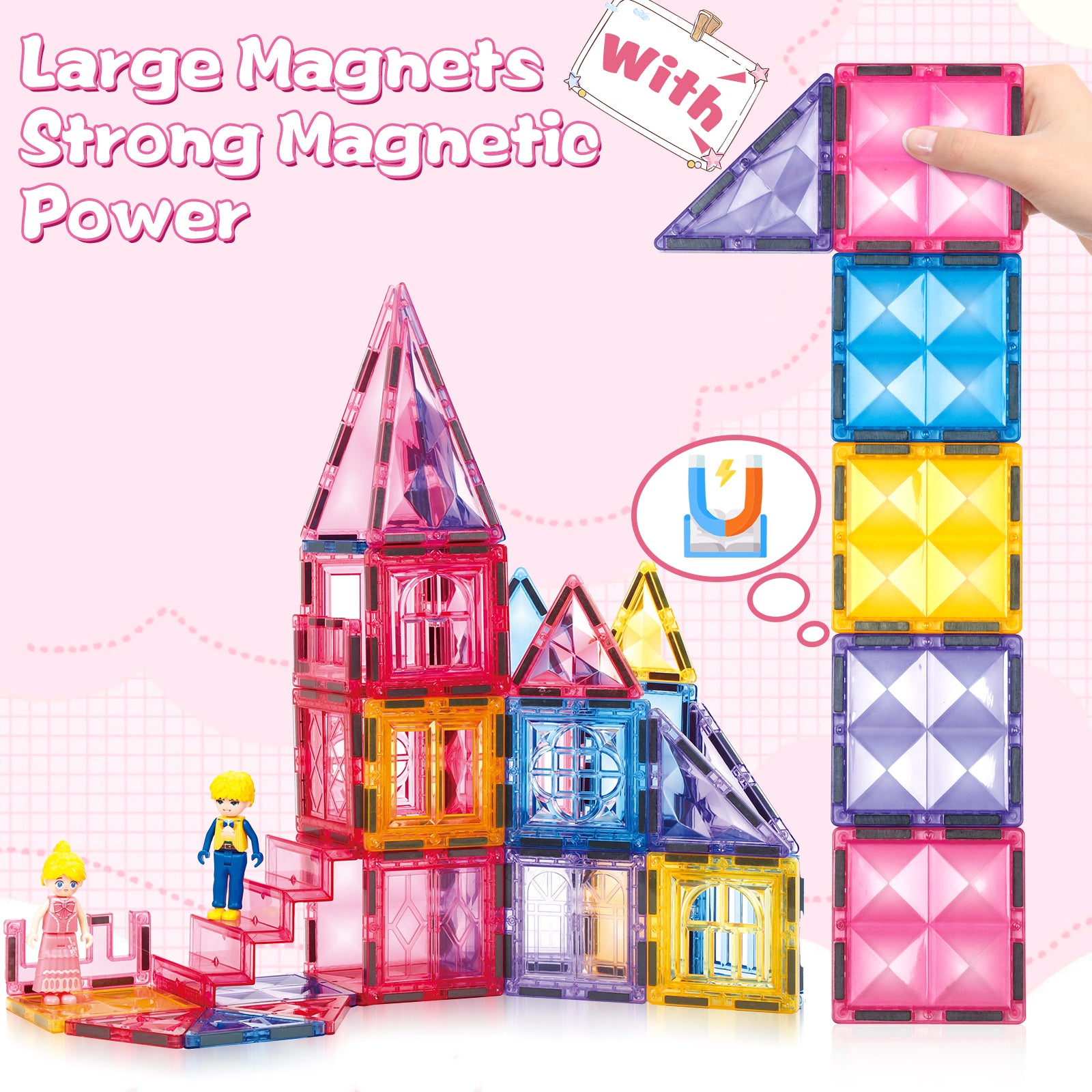 Diamond Magnetic Tiles with Dolls Building Toys, STEM Kids Toys Magnetic Blocks Christmas Birthday Gifts Ideas for 3+ Year Old Girls & Boys