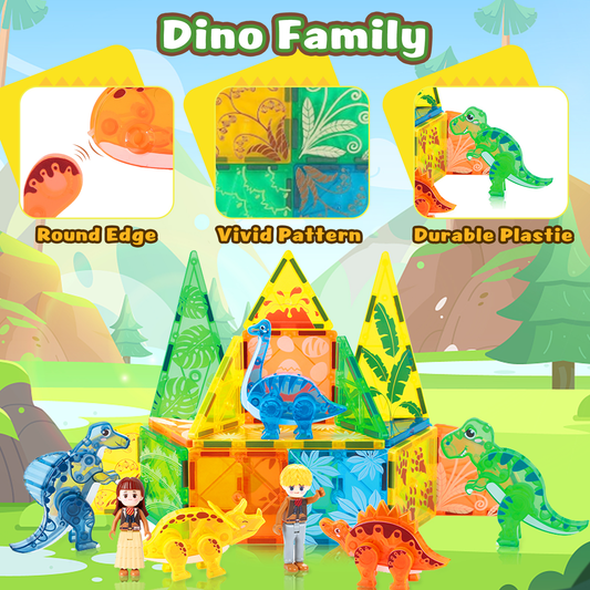 Dinosaur Toys Magnetic Tiles 3D Movable Dinos for Kids 3-5 5-7 Toddler Outdoor Sensory Toys, STEM Educational Magnetic Blocks for 3+ Years Old Boys Girls Kids Toys