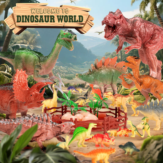 Dinosaur Toys for Kids 3-6,45PCS Realistic Jurassic Dinosaurs Figures with Eggs&Trees&Fence,Dino World Playset, Gift for Toddler Boys & Girls